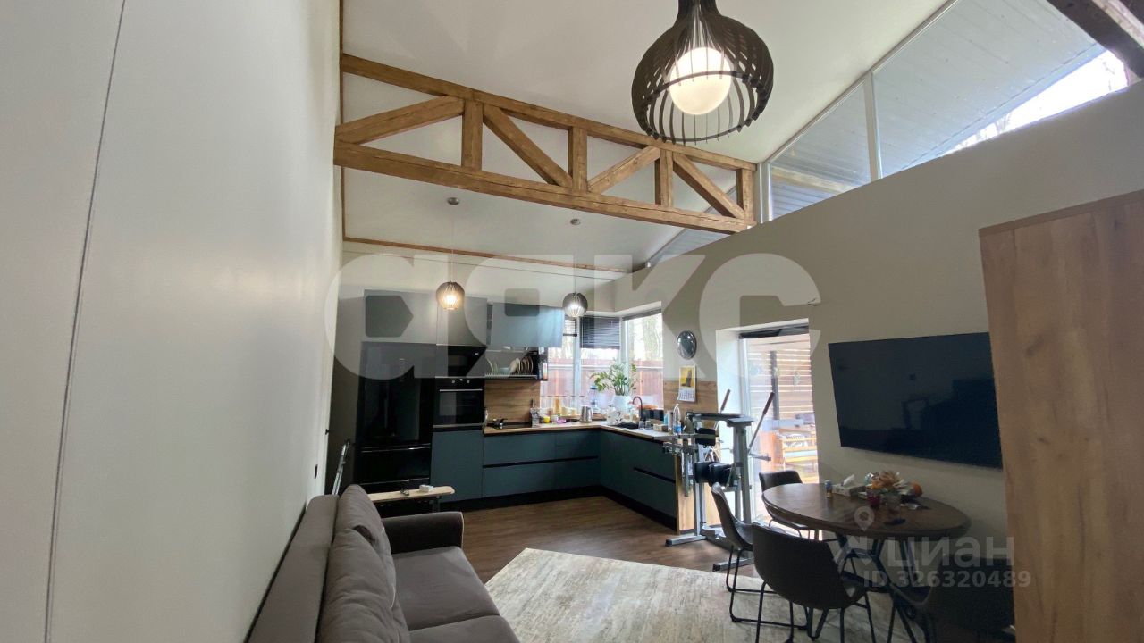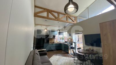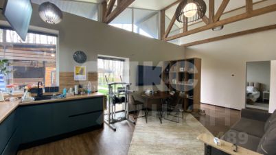 Дом выполнен в стиле лофт, который подойдет для творческих людей, предпочитающих активный образ жизни и нестандартный подход к решению задач. Мягкое и уютное освещение, гармонично подобранная мебель и техника, высокий потолок с балками, стилизованными под современное направление, широкая терраса и панорамные окна создают атмосферу слияния с природой.