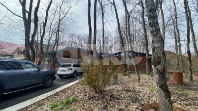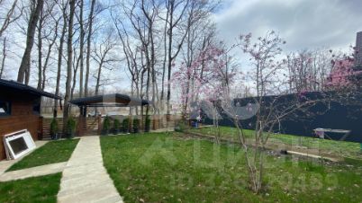 Территория вокруг дома огорожена забором из материала приятного коричневатого оттенка, который соответствует основному цвету стен главного здания. Рядом с особняком расположены клумбы с декоративными растениями и высокими деревьями, а также живописные зеленые лужайки. С заднего двора дома есть выход в лес. Перед домом есть большой навес для автомобиля, а также асфальтированный подъезд.