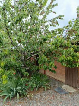 -В саду молодые фруктовые деревья: яблони, груши, абрикосы, черешня.
