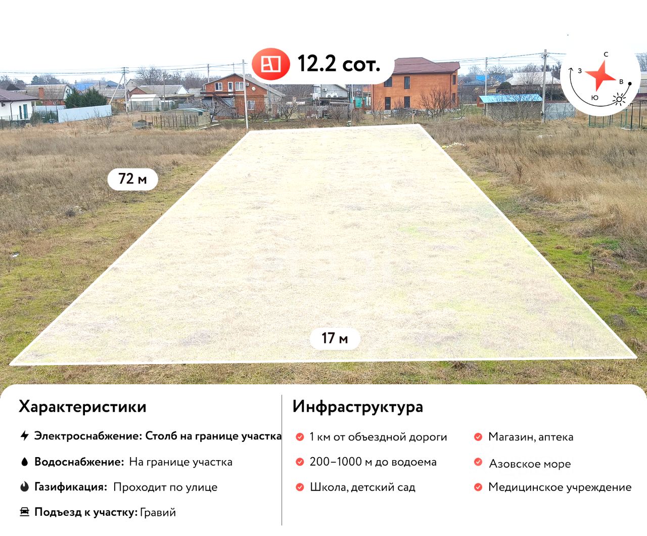 Развитая дорожная сеть и транспортная доступность обеспечивают удобную связь с Темрюком и другими ключевыми точками побережья. Это готовое решение для тех, кто ценит рациональность: объект с четким юридическим статусом, готовый к началу строительства в перспективном локации с высоким потенциалом как для постоянного проживания, так и для получения стабильного дохода от туристического бизнеса..