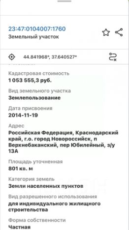 Кадастровый номер: 23:47:0104007:1760.