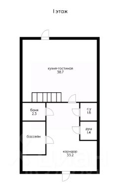 На первом этаже расположена баня, есть бассейн. Сан. узел и душевая кабина. Так же на первом этаже расположена большая кухня- гостиная.