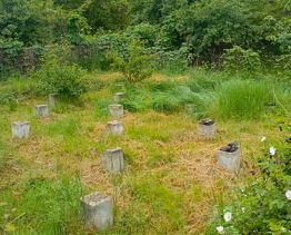 Забетонировано место под парковку машины, откатные ворота. Вкопаны сваи, что в дальнейшем можно построить большой дом.