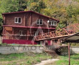 Второй двух этажный дом имеет площадь 183,6 м2. Год постройки 2003 г. Материал стен кирпич с утеплением и обшит сайдингом . В цокольном этаже дома расположены: кухня, санузел, котельная (электрическое отопление, бойлер для горячей воды), подсобное помещение. Жилая часть дома состоит из коридора прихожей, санузла, зала с камином , спальни с выходом на лоджию и огромной террасы в виде зимнего сада. В дом имеется вход как отдельно с улицы так и со двора. Далее спускаясь во двор расположен большой навес с мангальной зоной и выходом в бильярдную, где расположен восьми футовый биллиардный стол. Под бильярдной расположен авто гараж с мастерской. Рядом с домом есть так же ещё один гараж на одно авто с заездом прямо с улицы. Между домами проходит горный ручей, который по дворовой части обрамлён и "взят" в бетон. Летом сидя в открытой беседке слушая шум леса и горного ручья получаешь истинное удовольствие от единения с природой. Также имеется сад с различными плодоносящими деревьями. Выход в лес. Остановка общественного транспорта находится в 20 метрах, до моря пешим шагом 20 мин. (850м). Данный объект позволяет круглогодичное проживание двум семьям, а так же имеется место для возведения объекта для бизнеса. В связи с тем что собственник не проживает на месте, этим объектам требуется косметический ремонт. Поэтому торг присутствует.