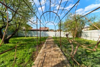 Отдельное внимание было уделено двору, все постройки в том числе и отдельно стоящая баня были выполнены в едином стиле, сад (инжир, черешня, персик, вишня, яблоня и др.) цветущие растения, озеленение двора все очень гармонирует и смотрится в едином ансамбле.