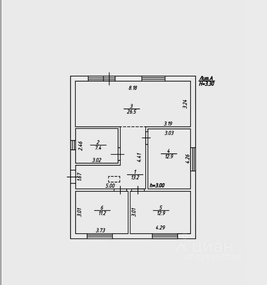 Планировка: прихожая, холл 13,2 кв.м, три спальни, просторный санузел 7,4 кв.м, кухня-гостиная 26,5 кв.м с выходом на задний двор.