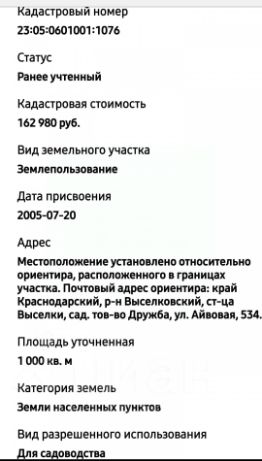 Арт. 110467105 Срочно продаётся земельный участок 10 соток в СНТ Дружба ул. Айвовая 534