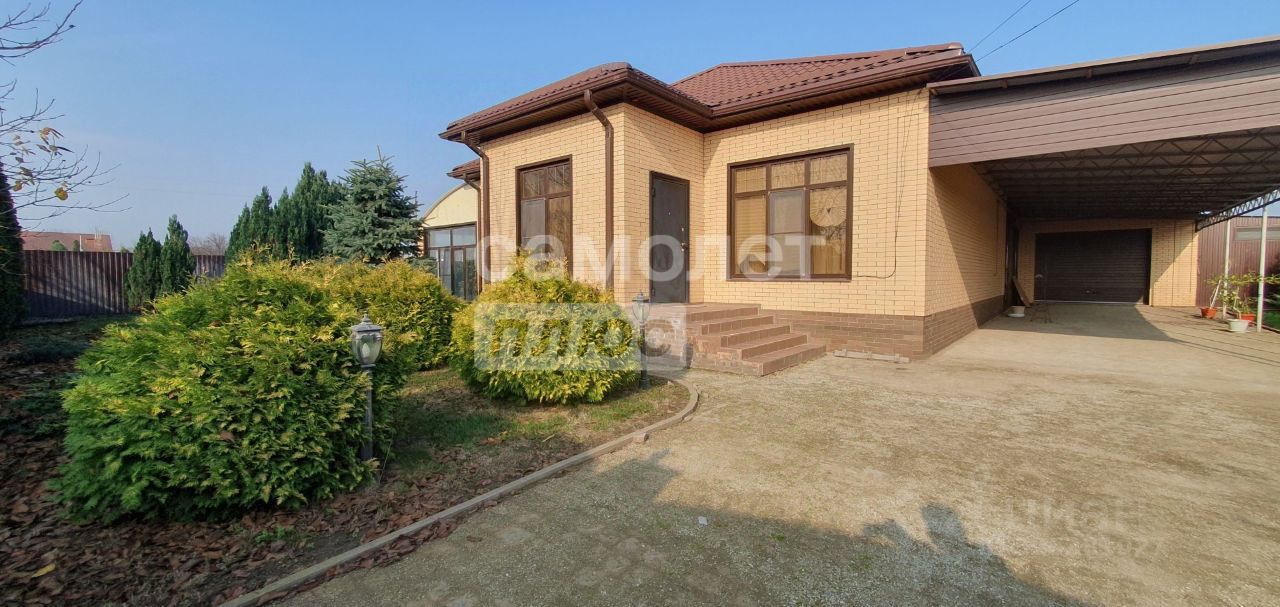 Арт. 125553223 Продаётся уютный дом 103м² с центрального входа нас встречает прихожая с нишей под шкаф купе, далее просторный зал - гостинная, две спальные комнаты: одна большая - хозяйская и вторая поменьше - детская, котельная-кладовая, совмещённый санузел с выделенными зонами под ванную, унитаз, душевую, стиральную машинку и большая зона под два умывальника и большая кухня-столовая с выходом на крытую террасу между основным домом и гостевым домиком, в котором есть одна спальня, гостинная, кухня и совмещённый санузел. Терраса закрыта со всех сторон, с витражным остеклением, с выходами в сад с плодовыми деревьями и в отапливаемую оранжерею с цитрусовыми плодоносящими деревьями (мандарин, лимон) и к ним проложен автоматический капельный полив. Есть просторный отапливаемый гараж с автоматическими роллетами. Вдоль всего дома к гаражу примыкает большой навес для нескольких машин. За гаражом расположен хозблок с клетками для кроликов и навес для хранения хозинвентаря. Во дворе выполнено ландшафтное озеленение с автоматическим поливом. Весь участок по периметру огорожен забором из профнастила на лицевой стороне из кирпича, профнастила и кованных изделий. Въездные ворота с автоматикой. В доме стоит охранная сигнализация с домофоном. При строительстве дома всё было продуманно до мелочей и выполнено из качественных материалов с соблюдением всех строительных норм и правил.