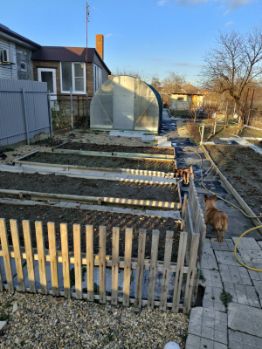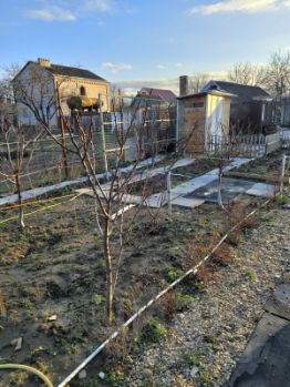 На участке расположены различные построики, такие как теплица, хозблок, летнии душ и санузел. Также имеется курятник, где можно держать домашнюю птицу. Участок обильно засажен плодовыми деревьями и кустарниками, что позволяет наслаждаться свежими фруктами и ягодами.