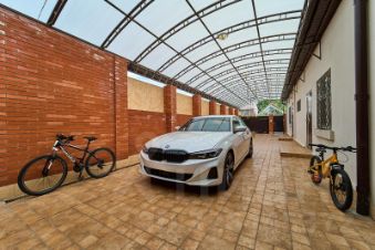 Во дворе свободно помещается три машины. есть дополнительная пристройка к дому с санузлом, для хранения резины, велосипедов, квадроциклов, организации пространства для хранения запасов продуктовых и не только.