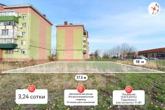 Площадь застройки 3,24 сотки, угловое расположение фасады 18 метров и 17 метров, дополнительно 2,8 сотки согласовано под парковку.