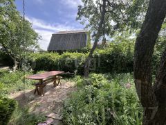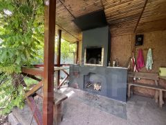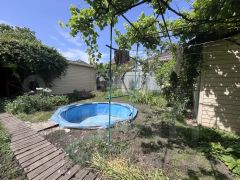 Участок благоустроен: оборудована зона для барбекю с мангалом, летний душ и каркасный бассейн. Отдельно стоит отметить наличие бани, что станет приятным бонусом для ценителей отдыха за городом. Для удобства хранения инвентаря предусмотрен хозяйственный блок, а для парковки автомобиля — откатные ворота. На участке также есть генераторная яма, обеспечивающая резервное электроснабжение в случае отключения света. Газоснабжение осуществляется через баллоны, что позволяет без проблем готовить еду.