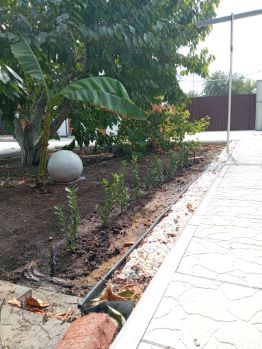 Двор асфальтирован, также выложена часть брусчаткой. Помимо всего есть из кирпича летний душ и туалет на улице. Скважина для полива растений.