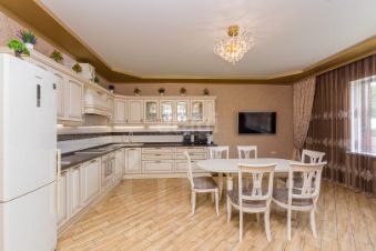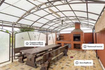 Земельный участок 10 соток, фасадная часть 28 м - забор из красного кирпича, автоматические откатные ворота. Во дворе бассейн 6х3х1,7 м, с подогревом. Крытая зона отдыха с каменным мангалом, столом и скамейками из массива дерева. Весь двор выложен плиткой, оформлен декоративными растениями. Также растет инжир и смородина. Имеются хозпостройки. Установлено видео наблюдение.В поселке 2 детских сада и школа. Документы готовы к продаже..