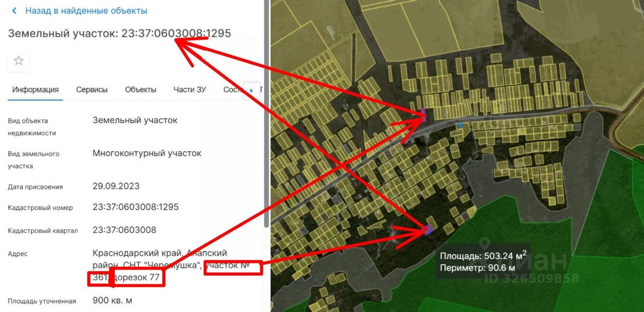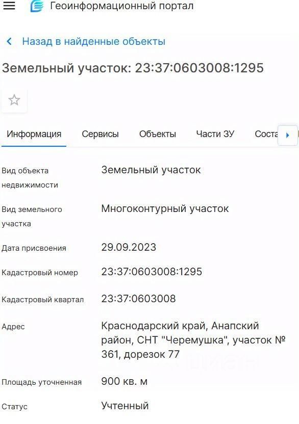 Продается земельный участок в СНТ "Черемушка" . Основной участок 5 соток под ведение садоводства и огородничества (продолжение улицы Грибной), прирезок 4 сотки - под огородничество. Возможность подключения электричества есть. Вода - скважина- надо бурить. Участок в аренде у администрации города Анапа до 30 октября 2072 года.