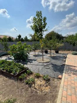 Инженерное оснащение соответствует современным стандартам: во всех помещениях установлены сплит-системы, а в основных зонах, кроме спален, смонтированы теплые полы. Прилегающая территория благоустроена: двор вымощен плиткой, оборудован въездными воротами, а на участке разбит плодовый сад с молодыми деревьями — вишней, черешней, персиком, шелковицей, яблоней и инжиром. Лавандовая аллея формирует особую атмосферу уединенности и эстетического удовольствия.
