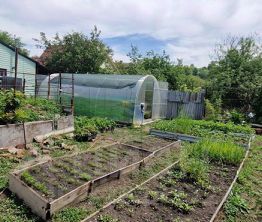Участок ровный, правильной формы. Есть отличная действующая теплица.