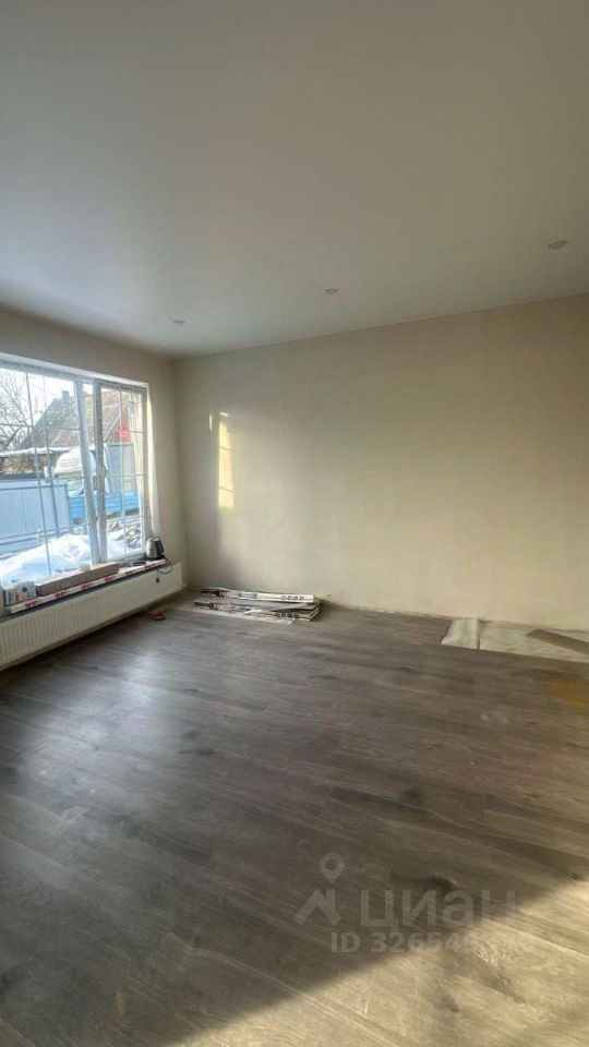 Во всем доме — натяжной потолок, ламинат — на полу, установлены межкомнатные двери.