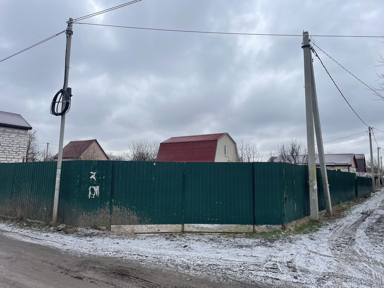 Огорожен забором из металло-профиля.