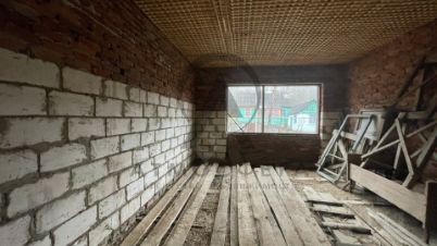 Крыша - шифер - целая. Перекрытия между этажами - балки, залитые бетоном и утепленные. На потолках в комнатах сделана обрешетка. Хорошо продумана система вентиляции из предполагаемой котельной , санузла нижнего и кухни. По коммуникациям: свет подключен, водопровод - по улице, газ по участку. Место - шикарное.