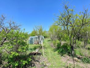Участок полностью сформирован и функционален: здесь расположены хозяйственные постройки для содержания птицы или мелких животных, а также вместительный подвал для хранения урожая и заготовок. Значительную часть территории занимает плодоносящий многовидовой сад с яблонями, черешней, персиками, инжиром, гранатом, киви, ягодными кустарниками и виноградником, что обеспечивает сезонную автономию. Имеется две теплицы.