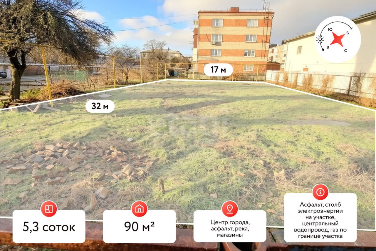 Участок площадью 5 соток с фасадом 17 метров расположен в центральной части Славянска-на-Кубани.