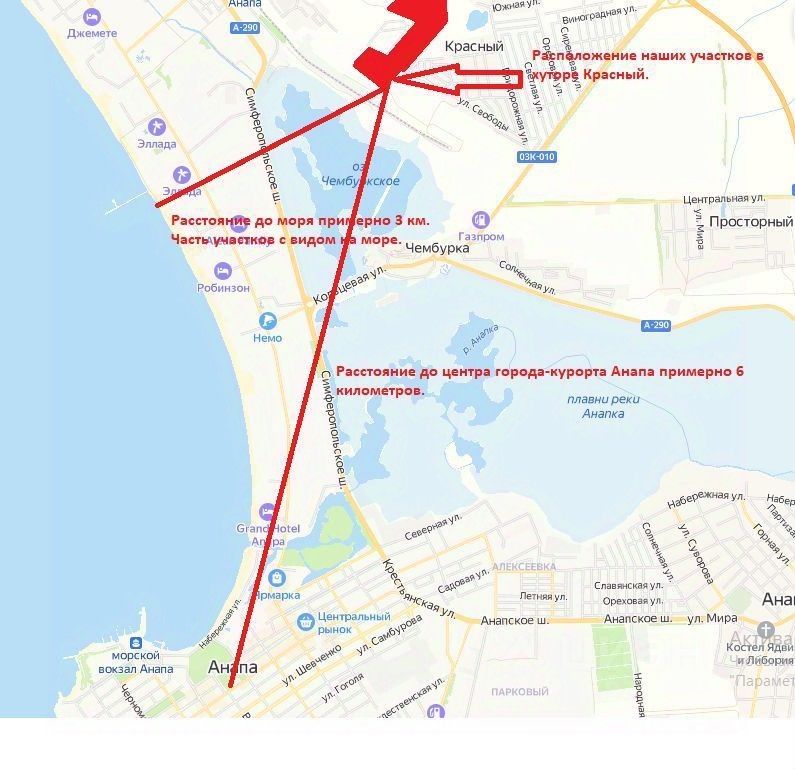 Очищенная площадь составляет 3,71 Га(см. Схему), то есть может быть использована непосредственно под застройку. Земельный участок продается оптом. Согласно генерального плана г-к Анапа и Пзз, на данном участке возможно индивидуально-жилищное строительство и блокированная застройка(таунхаусы высотой 3 этажа с подземной парковкой). По соседству построены КП Загород и КП Загород-2, которые обеспечены всей инженерной инфраструктурой (электричество, вода, газ, септик) Возводится соответствующая социальная инфраструктура для жителей. До ж/д вокзала и аэропорта дорога на автомобиле занимает 10 и 20 минут соответственно. До моря по прямой 3 км., до центра Анапы-6 км.