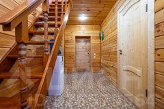 В доме на 1-м этаже располагается кухня-гостиная, холл и совместный санузел, на втором - комната свободной планировки, отделка стен полностью из натурального дерева, санузел весь в новой плитке.