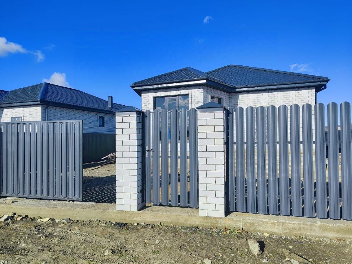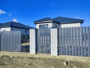 Ровный участок правильной формы. На участке достаточно места для баньки, парковки и ландшафта. По периметру дома установлен забор с калиткой и откатными воротами.