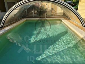 Бассейн 64 м., накрыт сдвигающимся павильоном, автоматическая гидролизная система очистки воды Бионет (вода без хлора).