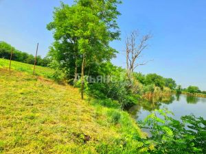 Участок разровняли трактором, залита площадка под мангальную зону, накрыта навесом, построен уличный туалет, двор бетонирован, выход огорода к реке.