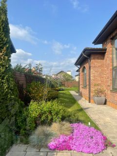 благоустроенный двор с ландшафтным дизайном и системой автополива.