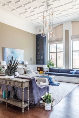 высота потолков: в основной гостиной — до 5 м, в остальных комнатах — 3,25 м;