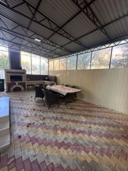На улице- навес, мангальная зона с раковиной , газовой плитой.