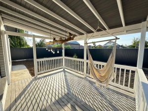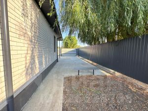 Участок правильной формы с фасадом 17.8м. Профильный забор, откатные ворота и площадка для 2х автомобилей. Широкая улица и спокойный жилой массив.