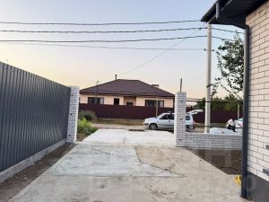 Участок правильной формы с фасадом 17.8м. Профильный забор, откатные ворота и площадка для 2х автомобилей. Широкая улица и спокойный жилой массив.