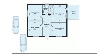 1-й этаж: просторная кухня-гостиная с выходом на террасу, прихожая, ванная комната.