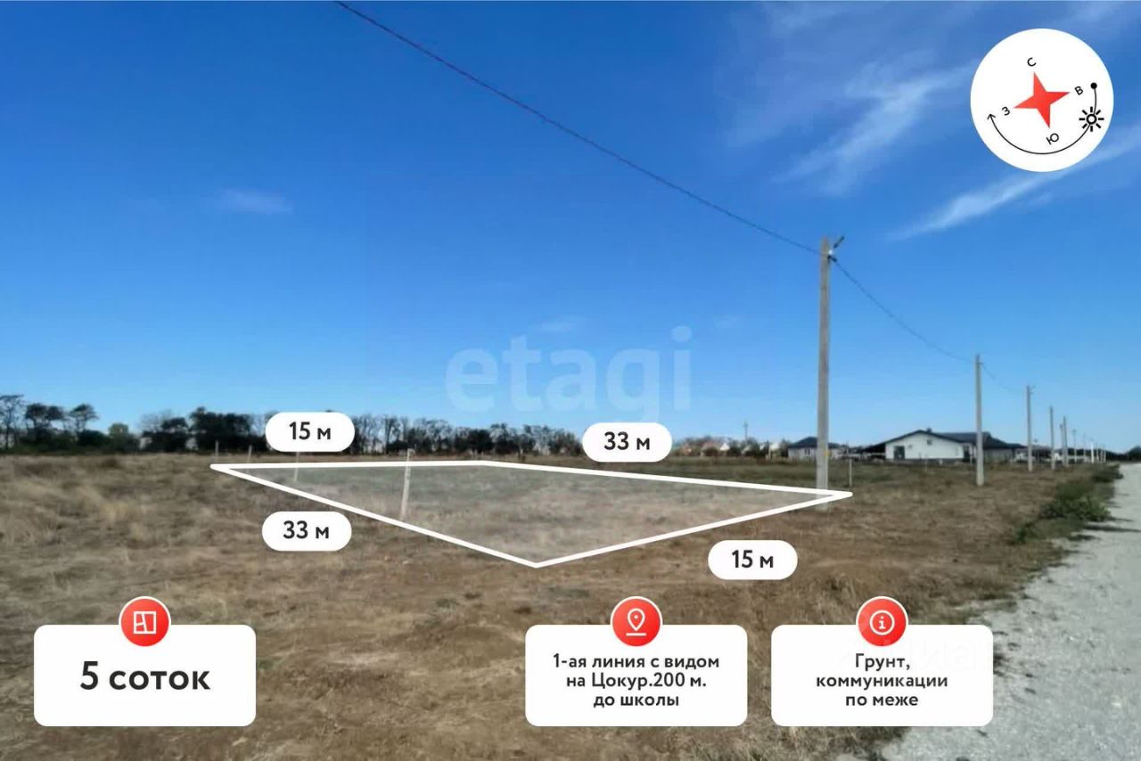 Земельный участок площадью 5 соток расположен в поселке Виноградный Темрюкского района и имеет прямой выход к берегу лимана Цокур.