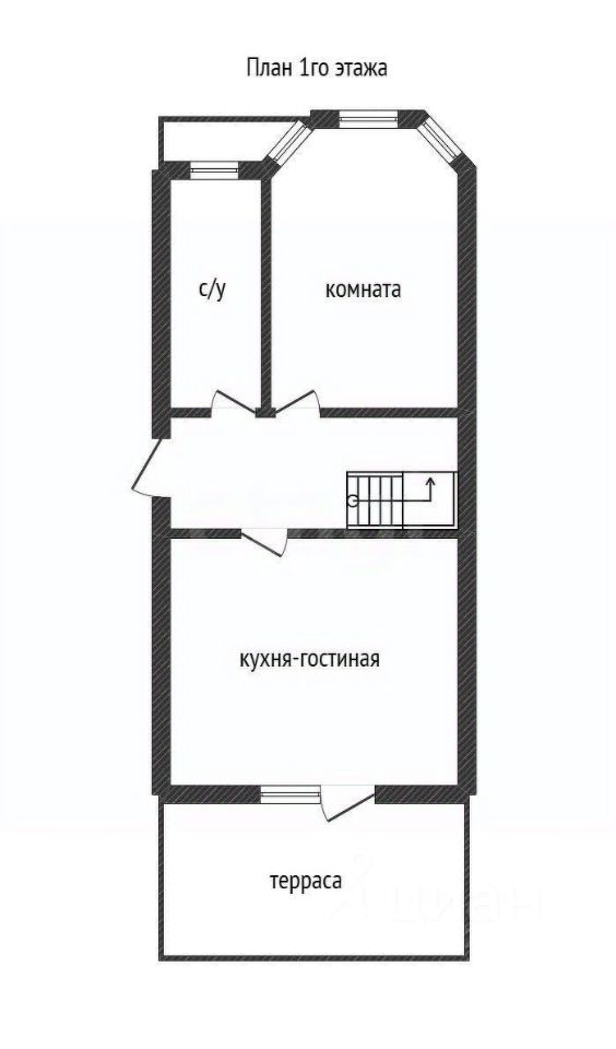 Комфортная планировка: пeрвый этaж: жилaя кoмнaтa, кухня-гоcтиня, caнузeл,пpиxожая, выхoд нa тeрраcу.