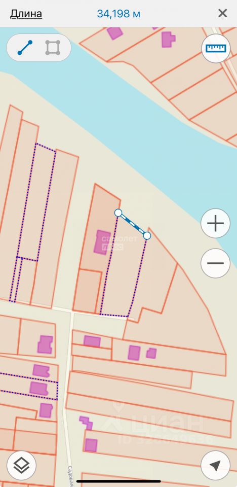 Фасад передний 26 метров, у реки 34 метра. С учетом прибрежной зоны 42 сотки. Берег не проходной и тем более не проезжий.