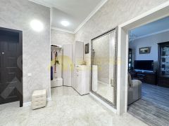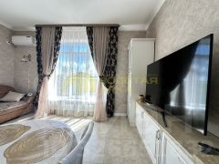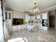 * Просторная кухня-гостиная со встроенной кухней и современной техникой: посудомоечная машина, индукционная плита, духовой электрошкаф, микроволновая печь, электрическая вытяжка и холодильник.