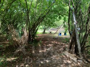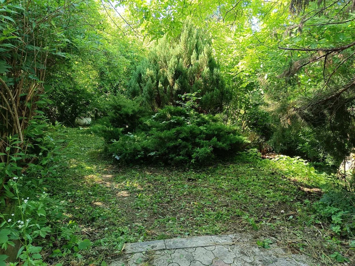 Заброшенный ботанический сад со своим выходом на реку, на "собственный" пляж с видом на Белую кручу. Участок находится на возвышенности.