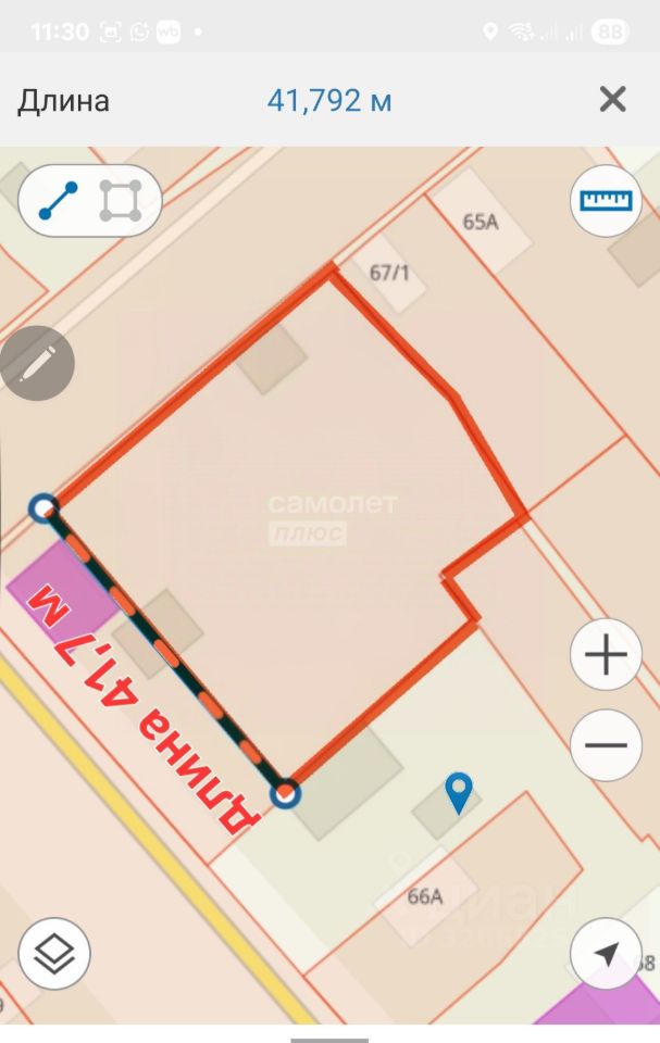 Размеры участка: фасад — 42,2 метра, глубина — 41,7 метра.