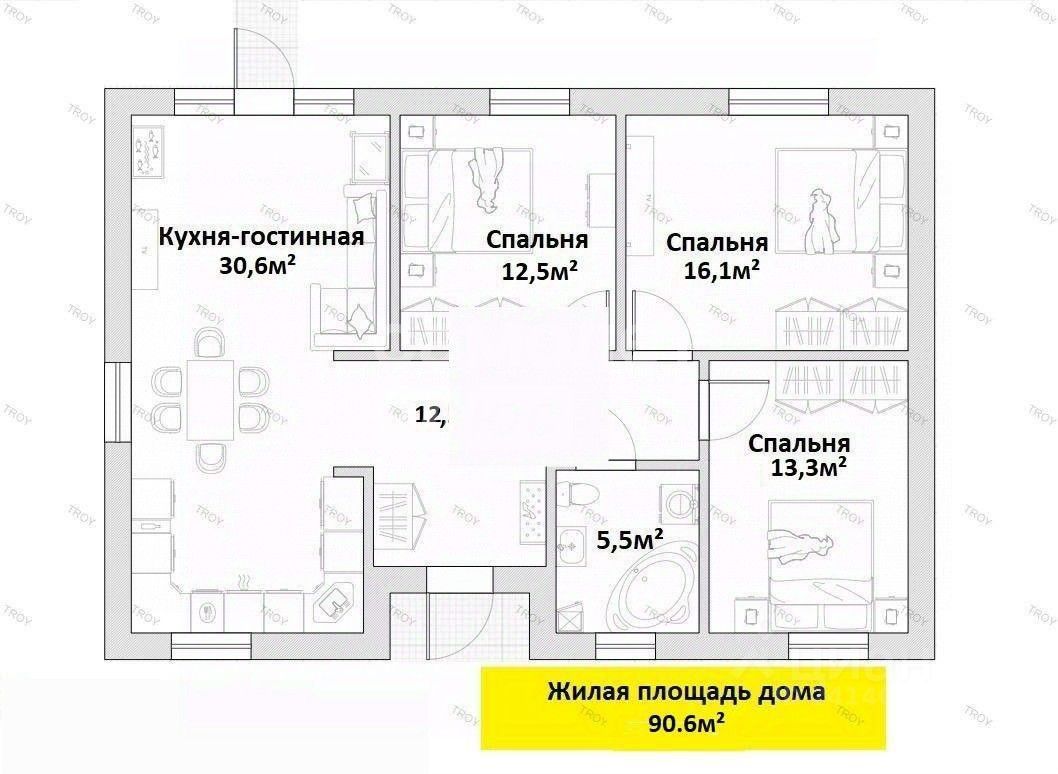 Арт. 93098418 Представляем вашему вниманию новый дом, расположенный в станице Медведовской. Общая площадь дома составляет 90 квадратных метров, и он находится на стадии предчистовой отделки.
