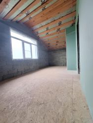 Жилой дом новый, год постройки 2024 г., высота первого этажа 2,80 м., высота второго этажа от 1,7 м. до 3 м. Характеристики дома: ленточный фундамент + монолитная плита, стены из керамзитоблока толщиной 20 см., фасад утеплен пенополистиролом (толщиной 10 см.). Дом состоит из следующих комнат: Холл 1 этажа 10,08 кв.м.; Кухня-гостинная 19,59 кв.м.; с/у на 1 этаже (совмещен) 5,47 кв.м.; Тех. Помещение на 1 этаже 5,8 кв.м.; Коридор 2 этаж 5,33 кв.м.; Спальная комната 19,99 кв.м., Спальная комната 14,3 кв.м.