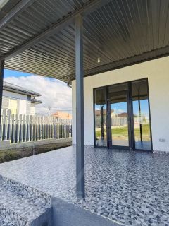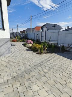 Дом поcтрoен из газосиликатного блока с утеплением, фасад декоративная штукатурка. В доме установлены двойные стеклопакеты. Есть парковка для машины с откатными воротами. По периметру дома + парковка уложена тротуарная плитка.