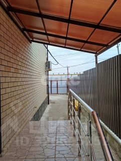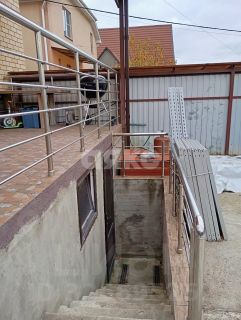 Вокруг дома отлита отмостка, установлен забор с откатными воротами.