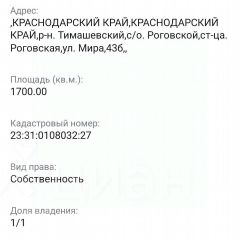 Адрес фактический:, Краснодарский Край, Краснодарский Край, р-н. Тимашевский, с/о. Роговской, ст-ца. Роговская, ул. Мира,43б. Торг.