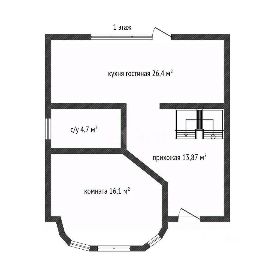 Просторная кухня и гостиная, 3 спальни, гардеробная, санузел.