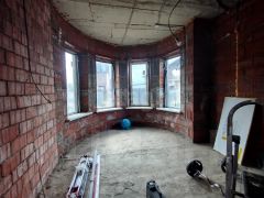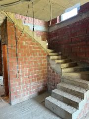 Общая площадь дома 139,5 кв.м. на трех сотках земли. Дом выполнен в черновой отделке. По всему дому уже проведена электрика (делали под себя). Есть межкомнатный стены.